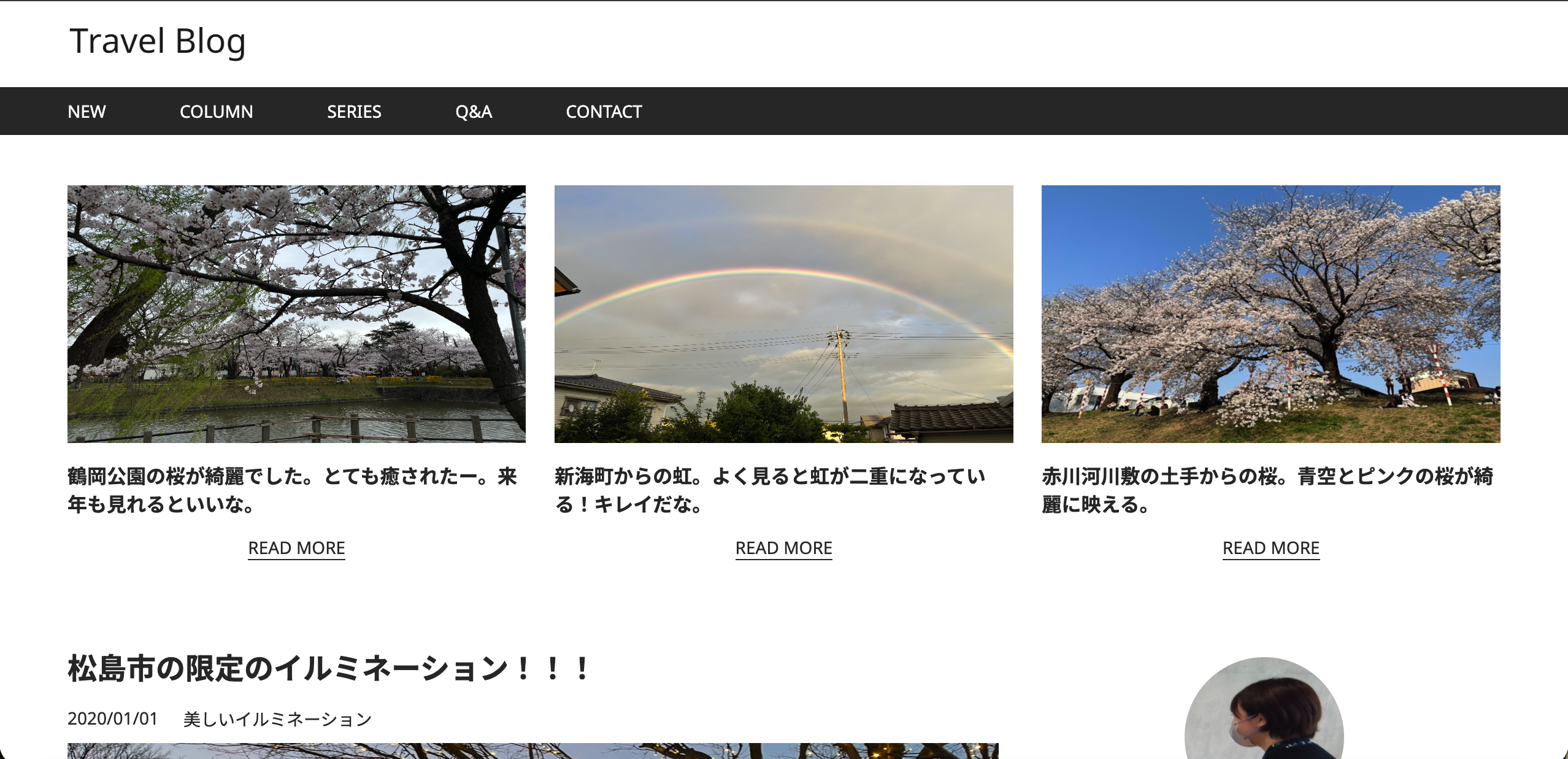 旅行のブログサイト ーレイアウトはブログ定番の2カラムサイトになっていますー